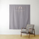 Um design de casamento elegante com tipografia de letra manuscrita "Eu aceito" combinado com título de tipografia moderna e nomes dos noivos em rosa bege sobre um fundo lilás cinza suave. O design perfeito para o seu dia especial!