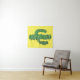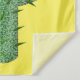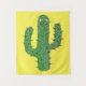 Esta tapeçaria incrível mostra uma imagem de arte digital de um cacto verde giro coberto em picles verdes escuros. O cacto tem olhos patetas e um sorriso no rosto.