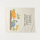 Tapeçaria para chá de bebê ou outro evento com um design fofo apresentando 4 dinossauros. 2 estão voando e 2 estão no chão. Criado com aquarelas.