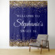 Uma caligrafia elegante moderna, com uma fonte moderna de estilo todos os bonés, em branco. Crie o seu próprio doce 16 anos, 16, ano da festa de marcenaria de 16 anos... bem-vindo ao esconderijo de tapeçaria para o seu amigo. O plano de fundo apresenta gráficos de arte digital brilhantes de ouro, brilhantes, em um fundo azul ou azul escuro de marinho sólido que impressão como uma foto. Décimo sexto aniversário para ela.