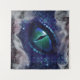 Olho gótico medieval azul mítico com tinta de vidro púrpura e nevoeiro.