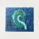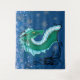 Retrato do perfil do dragão azul, verde e lacrimogênio com neve caindo por toda a parte. Rosa preto tribal.