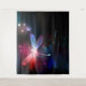 Luminosa, voadora, libélula vermelha, com asas transparentes e detalhadas sobre fundo escuro, noturno, luminoso com plantas tropicais e vagalumes. libélula vermelha.