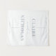 Modern, elegant wedding tapestry for a welcome sign features a minimalist dusty blue and white design with modern lines. Personalize this fabric sign with your wedding details with the easy to edit template featuring an elegant script font and classy serif font.