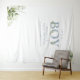 É um cenário de fundo para cabine de fotografia de chá de bebê de menino com uma tipografia azul elegante empoeirada e folhagem verde botânica bonita. Concebido por Thisisnotme©