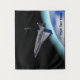 Para futuros astronautas judeus. Uma renderização digital de uma nave espacial El Al (icônica transportadora aérea nacional de Israel) entrando em órbita. A Terra é vista abaixo; uma estação espacial flutua à distância. Adicione seu próprio texto.