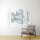 Um bebê chá bonitinho, banner de boas-vindas e painel de fotos com "Um Doce Pequeno Amendoim Está a Caminho" escrito numa mistura de tipografia moderna de cinza mole e um roteiro de na moda, e uma aquarela azul pastel de um elefante bebê. Personalize o nome da mãe e a data do chá de fraldas em uma simples tipografia de cinza.