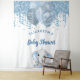 Para um Chá de fraldas elegante. Um fundo branco chic. Decorado com pingos de brilho sujo, aparência de pingar tinta, brilho, fitas de festas, balões azuis e prateados e um bebê elefante giro. Personalize e adicione o nome e uma data. Pode ser usado como uma faixa de boas-vindas, decor de parede para o chá de fraldas ou como um pano de fundo de fotos.