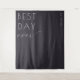 This elegant wedding backdrop features a minimalist design with the phrase "BEST DAY ever" in bold, modern typography. The layout combines strong sans-serif lettering with a flowing cursive script, creating a balance of formality and personal sentiment. Set against a deep charcoal background, the monochromatic color palette enhances the sophisticated and celebratory mood, making it perfect for capturing special moments on your big day.