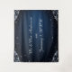 Elegant backdrop for your wedding photos, featuring dark background with silver trim. Add your own personalization with two editable areas for your special day. Not just for weddings, can be for any occasion as a photo backdrop. Option to choose different sizes to fit your needs. Matching wedding invitations and guest book in my Zazzle shop. Artwork designed by seller. Christian woman owned shop.