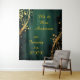 Elegant backdrop for your wedding photos, featuring dark green with gold trim. Add your own personalization with two editable areas for your special day. Not just for weddings, can be for any occasion as a photo backdrop. Option to choose different sizes to fit your needs. Matching wedding invitations and guest book in my Zazzle shop. Artwork designed by seller. Christian woman owned shop.