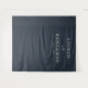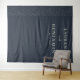 This elegant wedding backdrop features a deep navy blue background with a vertical column of subtle white dots on the left side, creating a refined texture. The design includes customizable text in a clean serif font, centered for balance and clarity, perfect for highlighting names and dates. Its minimalist style conveys sophistication and anticipation, making it ideal for formal celebrations. The cohesive color palette and crisp digital print ensure readability and a modern aesthetic, suitable for any significant event.