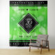 Torne o 20º aniversário de bodas de esmeralda uma celebração inesquecível com este tapete comemorativo! Letras elegantes em branco e preto sobre um fundo verde esmeralda bordeado por barras pretas adicionam um toque memorável para essa ocasião especial e marco extraordinário. Personalize com os nomes do casal, datas de casamento e mensagens de congratulações.