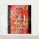 Torne o 29º aniversário de casamento de granada em uma celebração inesquecível com este tapete comemorativo! Letreiros elegantes com confetes hexagonais empoeirados a ouro em um fundo alaranjado avermelhado bordeado por barras pretas adicionam um toque memorável para essa ocasião especial e marco extraordinário. Personalize com os nomes do casal, datas de casamento e mensagens de congratulações.