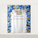 Este elegante tapete de Quinceañera apresenta um arco de balão cintilante em vários tons de azul e dourado com balão dourado 15. Serpentilhas e confetes caindo em azul e dourado completam a vibe da festa. Adicione seu nome para personalizar. Fácil de personalizar clicando em "Personalizar". Pode ser usado como um banner de boas-vindas, decoração de parede para a festa ou como um fundo para cabine de fotos.
