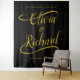 Tapeçaria de fundo de casamento com texto elegante em letra manuscrita. Totalmente personalizável -- os acentos ornamentais são imagens que PODEM ser editadas em tamanho, cor, rotação e posicionamento para realçar qualquer nome. Clique em "Personalizar mais" para alterar a cor do fundo ou mover qualquer elemento para criar o seu próprio visual. Observação: Este estilo foi configurado para acomodar a maioria dos nomes com 5-8 caracteres. Versões alternativas para nomes mais curtos e mais longos disponíveis na loja.