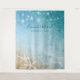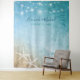 Crie seu próprio pano de fundo divertido e elegante para fotos de casamentos em destinos, chá de panela navais, festas de aniversário tropicais e outras ocasiões à beira-mar. Este design rústico em aquarela ilustrado pela artista Raphaela Wilson retrata misturas suaves de azul oceano e verde-azulado, juntamente com dourado arenoso para um efeito de areia cintilante. A folha de palmeira botânica, estrela-do-mar e luzes românticas podem ser reposicionadas e são opcionais. Se você personalizar ainda mais o design da praia, você também pode revelar flores brancas de plumeria tropical! Faça esses panos de fundo personalizados para fotos DIY serem únicos, adicionando seu texto personalizado (como a data do casamento, nome da noiva e do noivo, etc.). É simples reaproveitar este pano de fundo para fotos de casamento para um evento diferente ou para fins gerais de fotografia - até mesmo mudar a caligrafia e a tipografia moderna ao seu gosto. Aproveite! Categoria: panos de fundo suspensos para festas; panos de fundo de praia florais com conchas e estrelas-do-mar; e tapeçarias de pano de fundo de