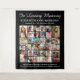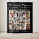 Tapeçaria memorial preta elegante que celebra a vida e os tempos de um ente querido falecido, apresentando "Em memória amorosa" em uma fonte branca estilosa, uma colagem de trinta fotos para comemorar sua vida, família, animais de estimação, amigos, conquistas, viagens e alegrias, seu nome e datas de nascimento e morte. Personalize palavras de memorial na parte inferior (inicialmente definidas como "Sua vida foi uma bênção, sua memória um tesouro. Você é amado além das palavras e lembrado além de qualquer medida").