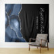 Esta elegante tenda de fotografia de casamento apresenta um design azul marinho e ágata prateada em fundo preto. Personalize com os nomes dos noivos em fonte manuscrita cinza prateado claro seguido pela data.