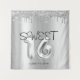 Adoráveis gotas de doce 16 e prata em fundo prateado. Qualquer garota adoraria ter seu nome personalizado neste design elegante.