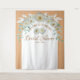 Elegante tapeçaria floral de rosas brancas script para chá de noiva.