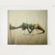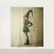 Um jovem elfo encantador com traços delicados e uma expressão brincalhona, vestida de trajes verdes e úmidos com um chapéu pontiagudo com sinos pendurados. Ela se mantém confiante com a mão na anca, seu longo cabelo louro fluindo graciosamente. Seu traje, desde as botas de couro vestidas até a bainha desgastada de seu vestido, se mistura perfeitamente com seus arredores mágicos de floresta, capturando o espírito de uma floresta encantada.