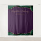 Esta elegante tapeçaria fotográfica de casamento mostra uma esmeralda verde e uma borda de ouro no topo e no fundo de um fundo roxo. Personalize-o com os nomes da noiva e do noivo em letra dourada, seguida da data.