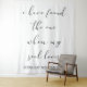 Faça seu dia de casamento inesquecível com esta incrível tapeçaria extragrande, projetada para adicionar um toque de romance e elegância à sua celebração. Apresentando a citação do eterno da Canção de Salomão, "Eu encontrei aquele que minha alma ama", esta bela peça serve como pano de fundo ou faixa perfeito para sua cerimônia ou recepção. Feito de materiais de alta qualidade, suas cores vibrantes e detalhes delicados criarão uma atmosfera memorável para seu dia especial. Quer pendurada atrás do altar, na entrada, ou como pano de fundo fotográfico, esta tapeçaria captura a essência do amor e da devoção de uma forma verdadeiramente única.