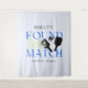 Celebre o amor e a competição amigável com esta divertida Tapeçaria de Despedida Esportiva de Pickleball Encontrou Sua Parceira! Este design apresenta elementos inspirados em pickleball em uma combinação fresca de azul, verde e preto. Se você está planejando um chá de noiva esportivo, camisas de time para uma celebração de dia de jogo, ou um visual fofo para casais, este design traz energia e charme.