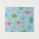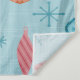 Um moderno meio século inspirou design de Natal com ornamentos coloridos de árvores de Natal e estereótipos sputnik, contra um fundo azul claro.