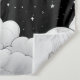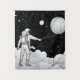 Escape into the cosmos with this captivating wall tapestry. The design features a delicate line art astronaut, floating amidst a dreamy scene of a starry night sky and wispy clouds. Tugging gently on a rope tied to a planetary orb, the space explorer symbolizes adventure, curiosity, and the endless wonder of the unknown.