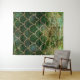 Tapete De Parede Escamas de Peixe de Sereia Brilho Verde e Dourado