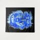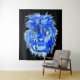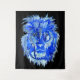 design decorativa de um leão masculino em cores azuis surreais. pintura única de um grande gato africano selvagem como tapeçaria decorativa na parede