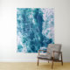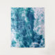 Design de fantasia azul colorido, verde-marinho, verde-lacre e abstrato branco de ondas do mar com espuma.