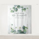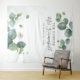 Tapeçaria de Estande de Foto de Suculentas com Folhas de Eucalipto. Ótima decoração de parede para festas e banner para um chá de noiva moderno e botânico. Apresentando folhagens de eucalipto com fundo de aquarela rosado. Altere facilmente os detalhes clicando no botão "Personalizar" acima.