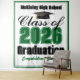 Personalize seu próprio tapete de estande de fotos da festa de formatura do ensino médio da turma verde de 2026 para um graduado do ensino médio ou faculdade. Letras de time legais para o ano em decoração comemorativa para os formandos.