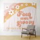 Banner de festa de aniversário de 4 anos Retro Four Ever Groovy com margaridas boho.