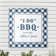 Tapeçaria de casamento personalizada festiva e elegante sinal / fundo de festa para um evento de "Eu Faço Churrasco" no quintal. Personalize com os nomes dos noivos e data. Inclui uma borda xadrez azul marinho e branco / padrão de xadrez de toalha de mesa e tipografia rústica elegante. Perfeito para uma festa de casamento de churrasco ao ar livre casual de verão ou recepção.