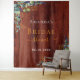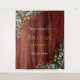 Madeira marrom rustica como fundo. Decorados com folhas de eucalipto, prigos, verde e dourados verdes, de cor aquosa. Personalize e adicione o nome da noiva a ser e uma data. Letras brancas e ouros. Pode ser usado como uma faixa de boas-vindas do Chá de panela, como decoração de parede de festas ou como pano de fundo de uma cabine de fotos.