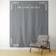This elegant wedding backdrop features a sophisticated and timeless design, perfect for capturing special moments on your big day. The minimalist style is highlighted by delicate floral motifs in the corners, adding a touch of natural beauty to the overall look. The soft gray color palette creates a serene and refined atmosphere, while the clean typography ensures that important details stand out gracefully. Ideal for both formal and intimate settings, this backdrop will beautifully complement any wedding decor theme, offering a versatile canvas for cherished memories.