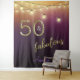 Este elegante fundo de foto personalizado para festa de 50 anos apresenta um fundo roxo e preto com luzes de corda e o texto "50 e Fabuloso" em brilho dourado falso e o nome dela! Isso é perfeito para o aniversário de 50 anos dela e certamente proporcionará muita diversão no seu aniversário especial!