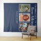 faixa de fundo de colagem de fotos de 70º aniversário 'Através dos Anos' mostrando o aniversariante em diferentes fases da vida. Use como fundo para uma mesa de sobremesas, barra de doces ou mesa de buffet como parte das decorações da sala, e depois pode servir como fundo para uma cabine de fotos mais tarde à noite.