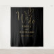 Este pano de fundo de fotos de casamento com guião preto e dourado elegante pode ser personalizado com todas as suas informações especiais sobre o dia do casamento. Projetado por Thisnotme©