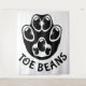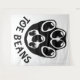 Uma pata preta com feijão preto como dedos, com o texto, "Feijão de Ovos", por baixo da pata.