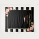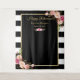 Felicitações de Aposentadoria Fundo Floral Listras Preto e Branco.