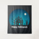Tapete De Parede Feliz Halloween Blue e Black Hauned House