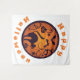 Feliz crachá do círculo do Halloween com tipografia de gatos negros e morcegos