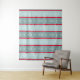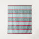 Ilustração feliz de Natal com árvore de Natal e decoração de estrelas em fundo listrado vermelho e azul