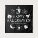 Nome personalizado Feliz do Halloween assustador Condecorações de tapeçaria preto e branco com texto personalizável jack ou lanterna, abóbora, bruxa, fantasma, crânio, lua, gato preto