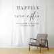 Ttapeçaria de recepção de casamento com "Feliz Sempre Depois" em tipografia elegante e um roteiro moderno, seus primeiros nomes e data de casamento.